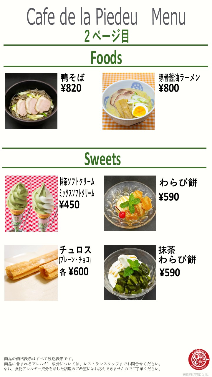 国営讃岐まんのう公園 レストランメニューのアレ...